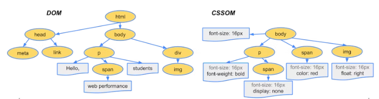 - HTML parsing 중에 CSS가 있으면 CSSOM(CSS Object Model) Tree 생성 또한 같이 생성