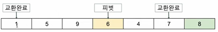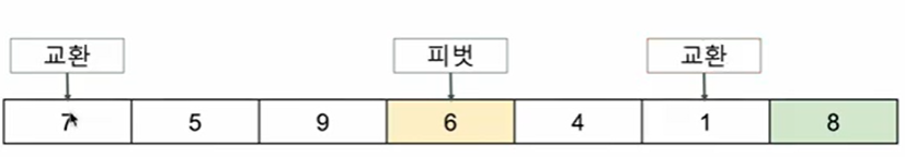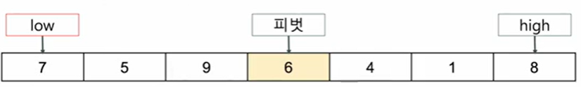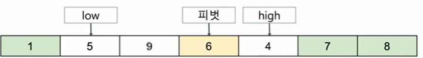 # 피벗을 기준으로 왼쪽에는 피벗보다 작은 값, 오른쪽에는 큰 값들이 오도록 배열을 나눈다