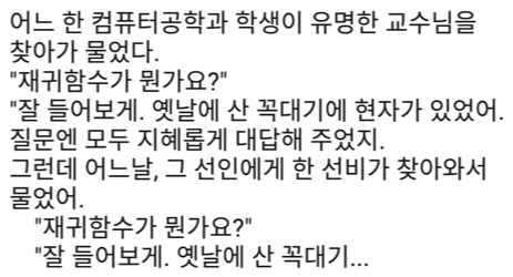 - 함수 안에서 자기 자신을 다시 호출하는 기법